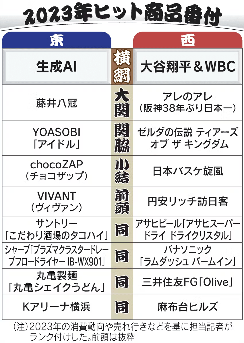 昨年に引き続き、日経MJヒット商品番付を見ながら1年分の遅れを取り戻したいと思います。
