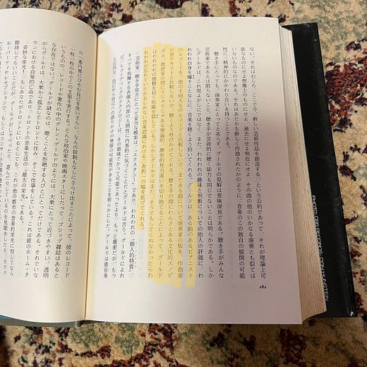 クラシック音楽という、もっとも厳格な規範があるような芸術形態において、「他者やオリジナルと比較してもしょうがないよ」というグールドのメッセージは特異です。しかし「ただそこに生じるエクスタシーや個人的特質に気づくこと」の重要性について説かれると、それが音楽の演奏に限らない話に思えてきて、いまや誰もがなんらかのかたちでクリエイターである時代を励ます言葉に聞こえてきます。(いまはTRPGで頭がいっぱいなのでまずは)ゲームのなかで何かをロールプレイングすることもそうだし、文章や音楽をつくるときもそう。エクスタシーと個人的資質に気づく、という表現が気に入りました。