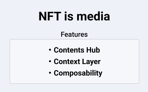 NFTのメディアとしての本質とは何か? 青木宏文さんは「Contents Hub」「Context Layer」「Composability」という3つのキーワードを使ってその説明を試みています。
